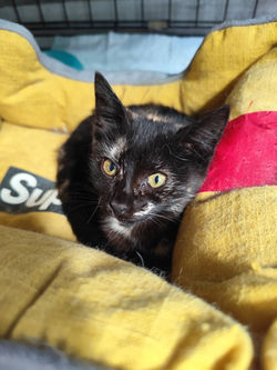 Sie ist lieb und ruhig, braucht aber nach dem, was sie durchgemacht hat, Zeit, um Vertrauen zu fassen.